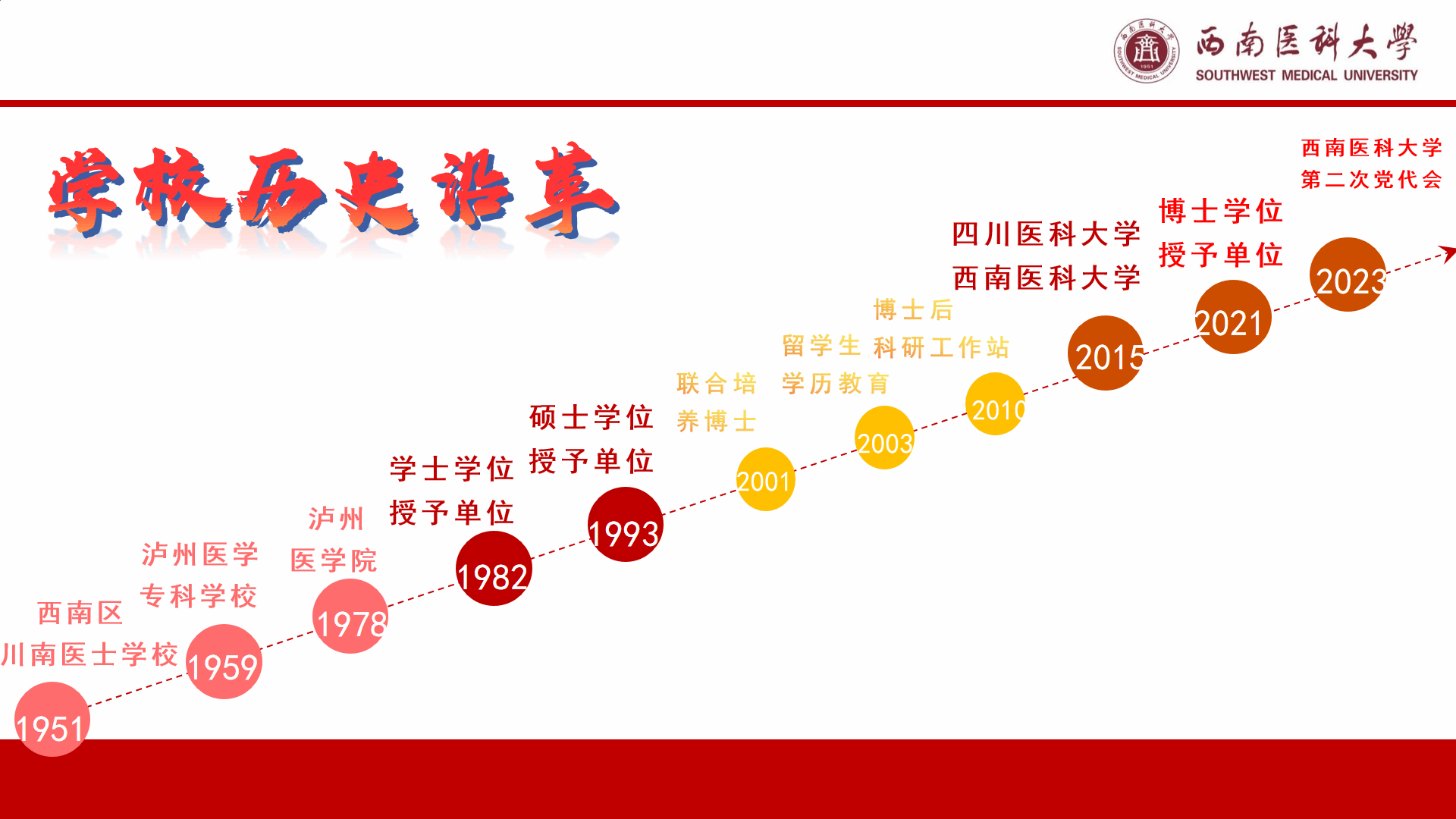 学校前身西南区川南医士学校始建于1951年,1959年升格为泸州医学专科学校,1978年升格为本科院校并更名为泸州医学院,1982年获得学士学位授予权,1993年成为硕士学位授予单位,2001年开始联合培养博士,2004年起开展留学本科生学历教育,2010年获准设立博士后科研工作站,2015年更名为beat365官方网站,2021年获批博士学位授予单位。