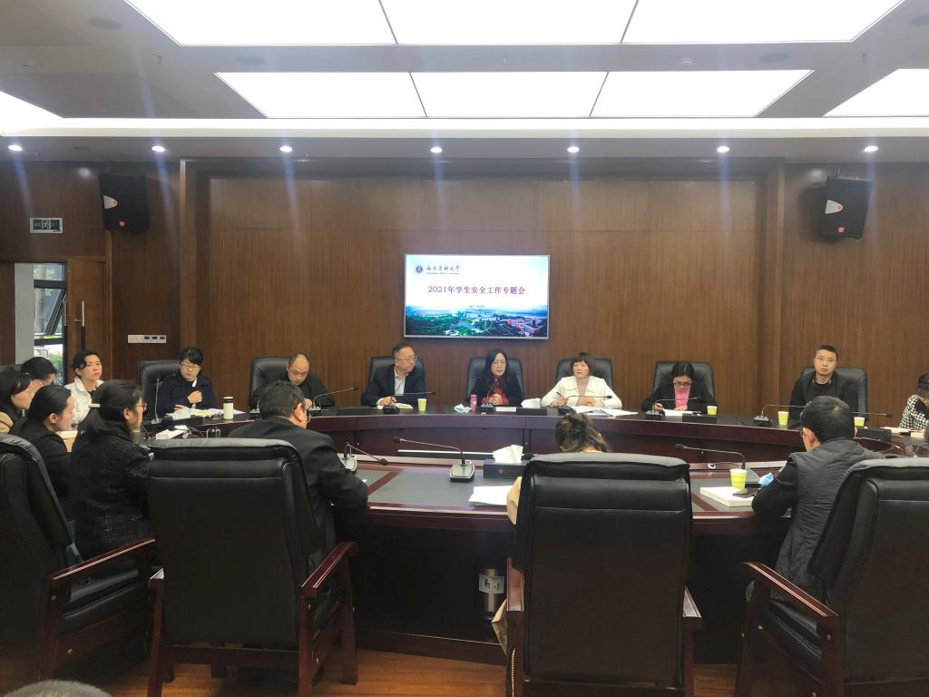 47日下午,学校在城北校区第一会议室召开学生安全专题研讨会。党委副书记刘毅,党政办、学生工作部、武装保卫处、基建后勤处相关领导干部以及二级院系分管领导、学生科长和年级主任参加了会议。