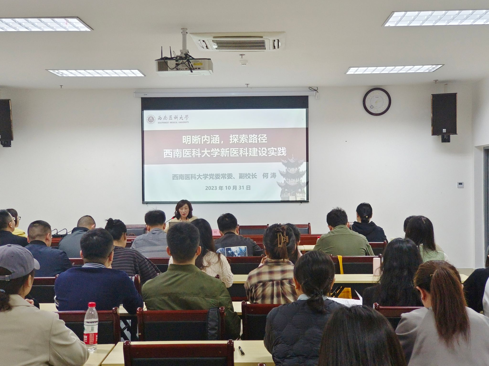 学校党委常委、副校长何涛作了《明晰内涵,创新路径——beat365官方网站新医科建设实践》专题讲座,介绍了新医科建设的背景、意义、内涵及beat365官网新医科建设的实践路径,引导新进教师扎根教学实践、探索教学创新,成为有情怀、责任、良知和温度的教育者。
