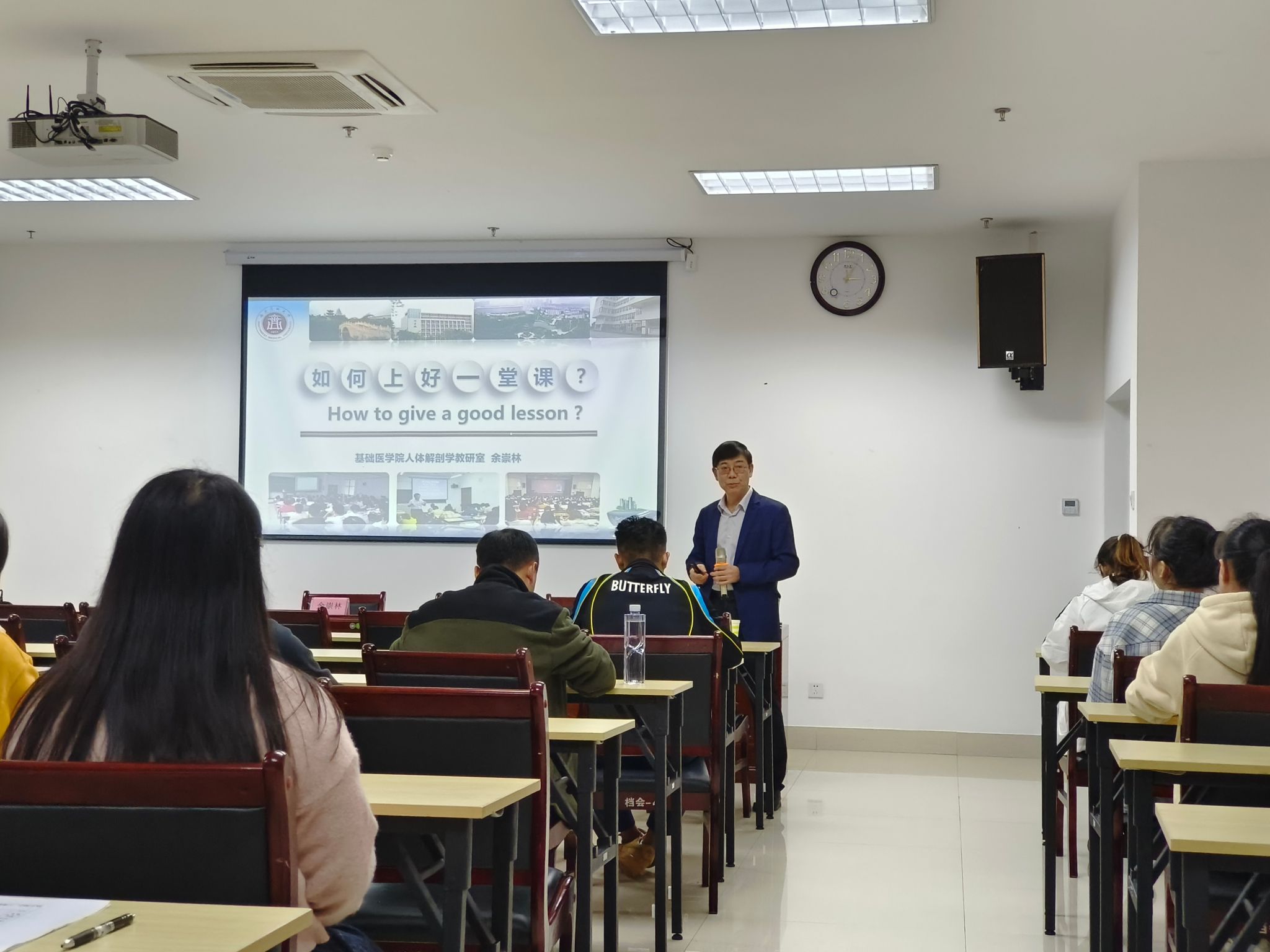 全国优秀教师、基础医学院余崇林教授作了《如何上好一堂课》名师讲坛,分享了为师之道和教学经验,帮助新进教师更好地站上讲台。