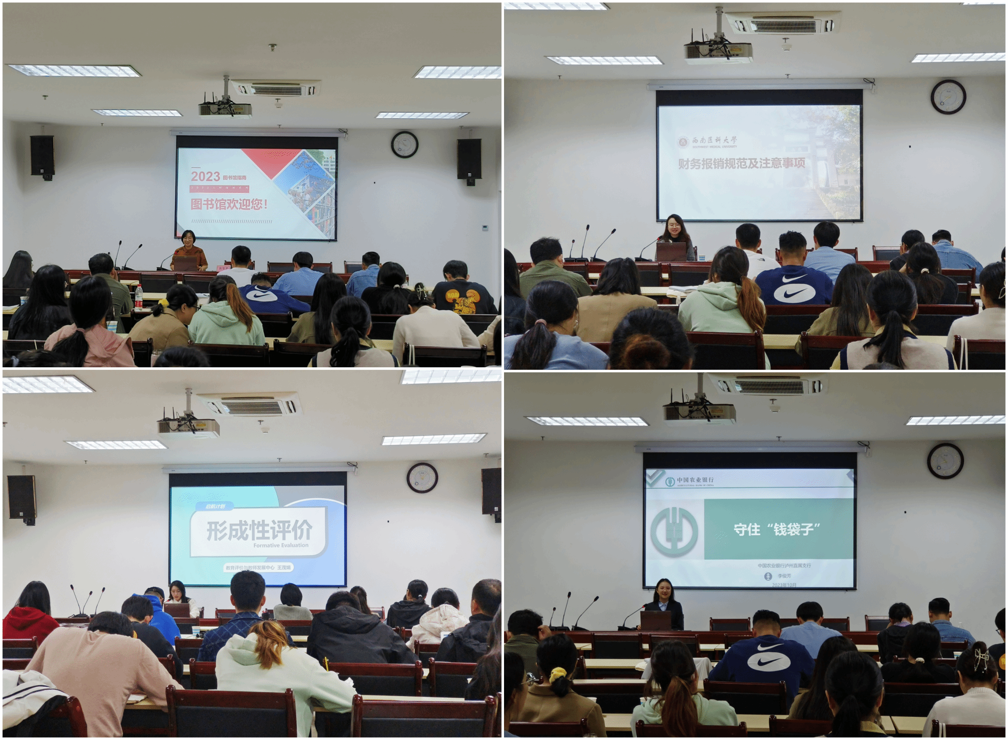 财务管理处雷喻婷、图书馆曾果果分别介绍了日常费用报销规范及注意事项、学校图书馆概况与资源利用方式,为新进教职工的工作和学习提供支持。教育评价与教师发展中心王茂娟介绍了学校“五位一体”教师发展体系,并作了“形成性评价”主题分享,明确形成性评价的含义、辨析相关概念。