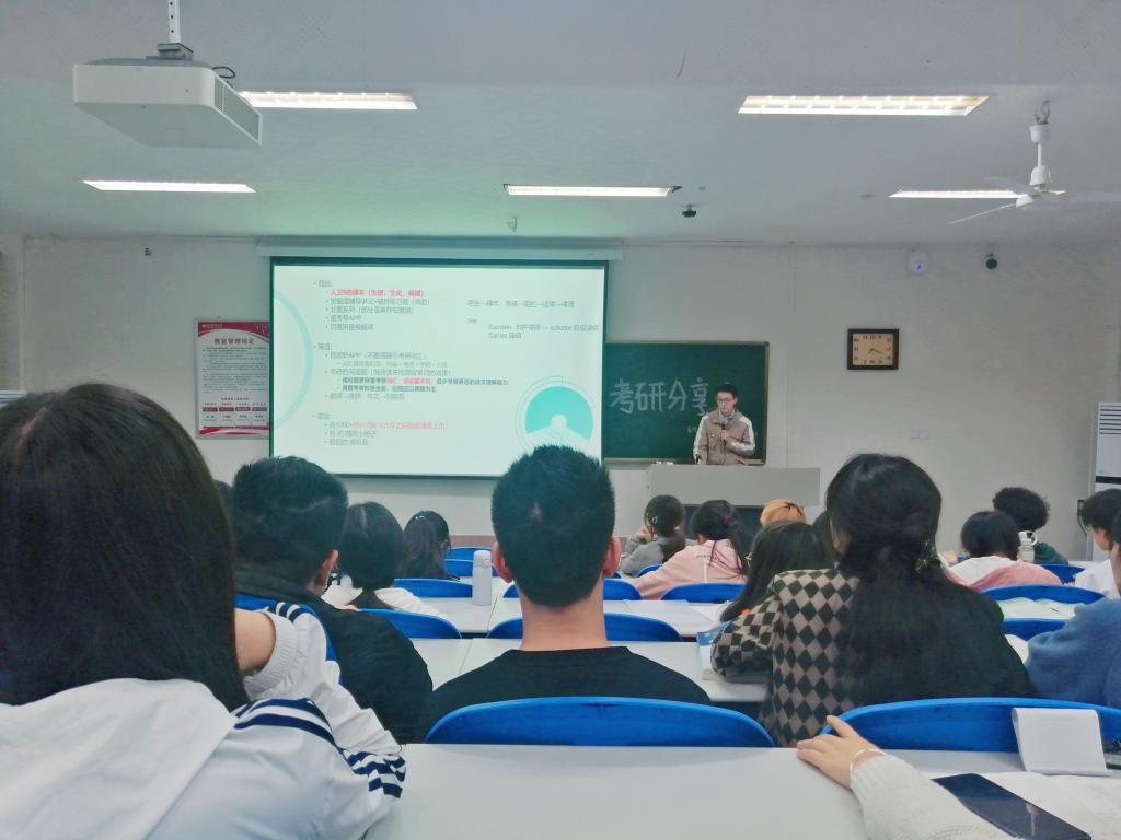 为进一步做好2018级学生的考研指导服务工作,提高医学检验技术专业学生的考研积极性,4月28日晚,医学检验系在忠山11阶梯教室举办了考研经验交流分享会,2021届毕业生代表修齐、曾铧庆应邀分享各自的考研经验,2018级全体同学、2019级和2020级部分同学参加了分享会。会议由团总支副书记景冠宇主持。