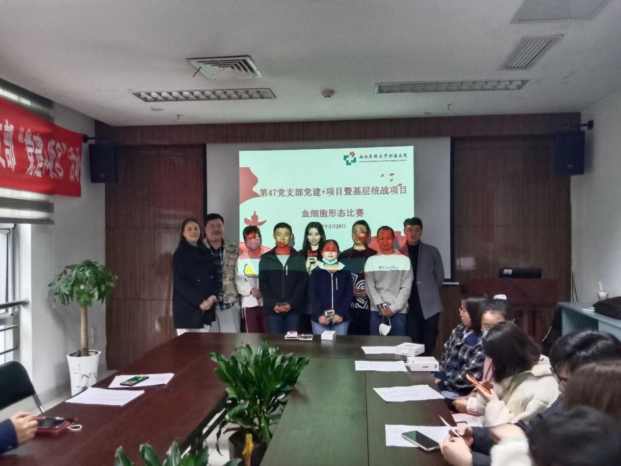 为深入推进“党建+专业”模式,实现党建、专业发展双丰收,3月25日下午,附属医院第47党支部开展“以党建强专业,以专业促党建”的党建+和基层统战项目—血细胞形态比赛的主题党日活动,医学检验系党总支书记吕春和第47党支部书记杨葵作为评委观摩比赛,支部全体党员及实习生代表参加。比赛由朱喜丹主持。