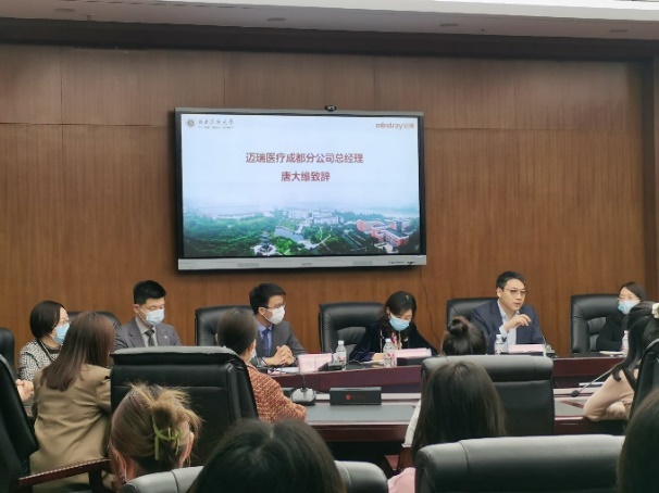 迈瑞医疗成都分公司总经理唐大维介绍了迈瑞公司30余年自主创新历程及企业发展理念;体外诊断市场专员王阳介绍了以迈瑞为剪影的IVD行业发展以及与学校协同育人的探索与实践,希望未来与学校能够进一步拓展合作,在人才培养、学科建设等方面实现从传统到智能再到智慧的协同发展。