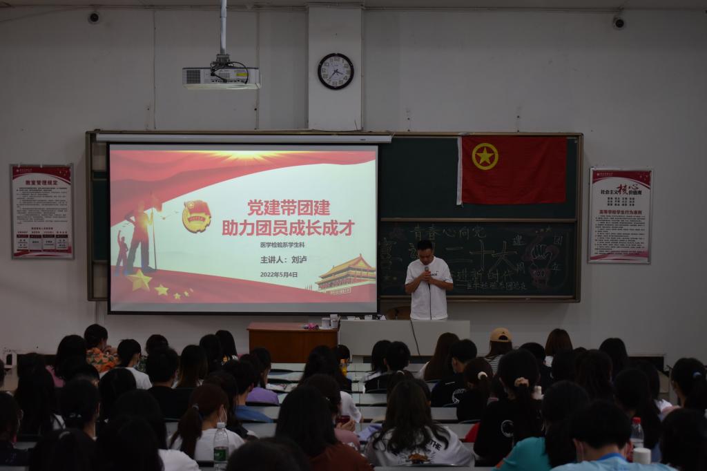 在中国共产主义青年团成立100周年之际,为了让广大青年学生进一步接受思想教育,5月4日,医学检验系在荟文楼204开展“青春向党、不负韶华”党建带团建主题活动。医学检验系辅导员刘泸及医学检验专业2020级、2021级全体学生参加活动。