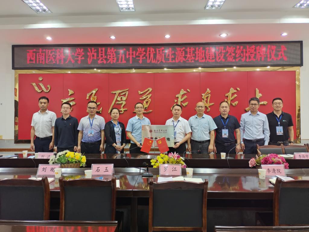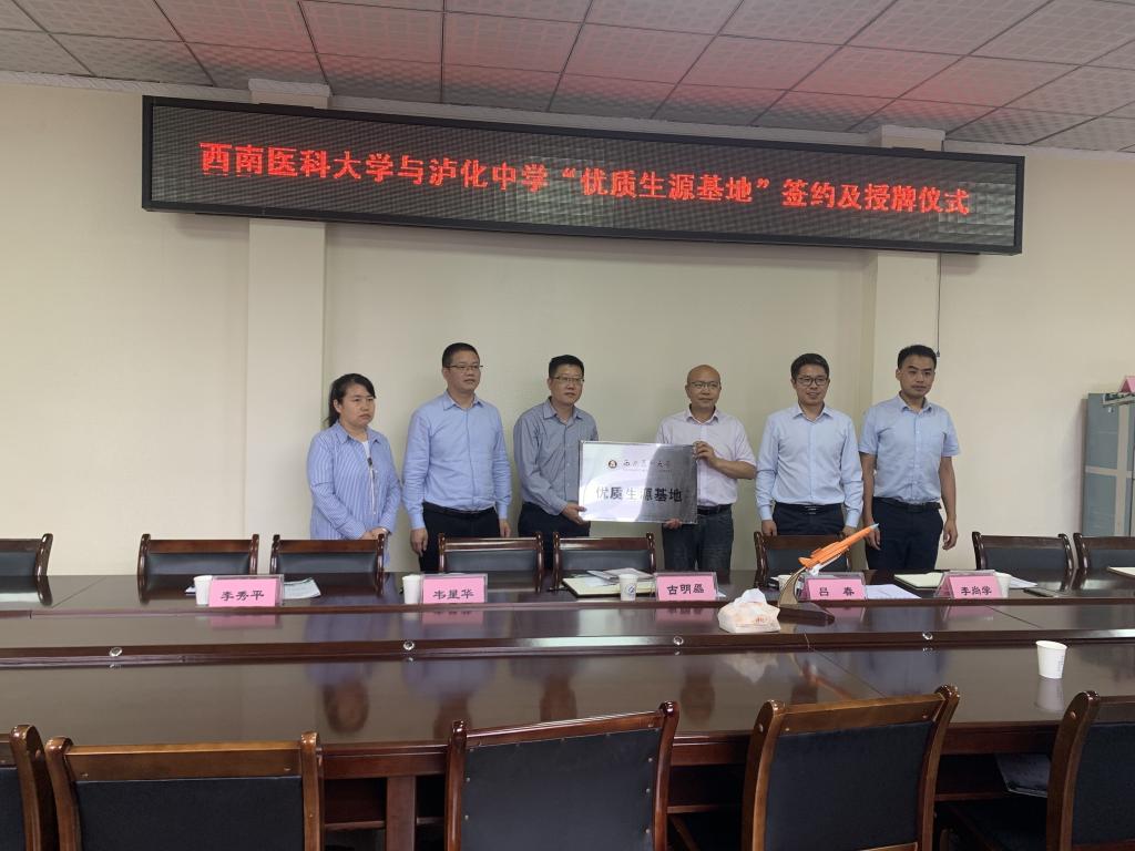 5月27日,beat365官方网站与泸化中学共建优质生源基地签约仪式在泸化中学举行。医学检验系党总支书记吕春、学生科科长李尚学、辅导员刘泸一行与泸化中学党委书记、校长古明磊等校领导及招办、教务部门及教师代表进行了座谈交流。古明磊介绍了泸化中学的基本情况和高2022届毕业生基本情况,吕春介绍了beat365官方网站、医学检验系基本情况及招生录取情况。双方还就优质生源基地建设进行了深入的交流,并回答了毕业年级班主任的提问。会上,双方共同签署了“优质生源基地合作协议”并授牌。
