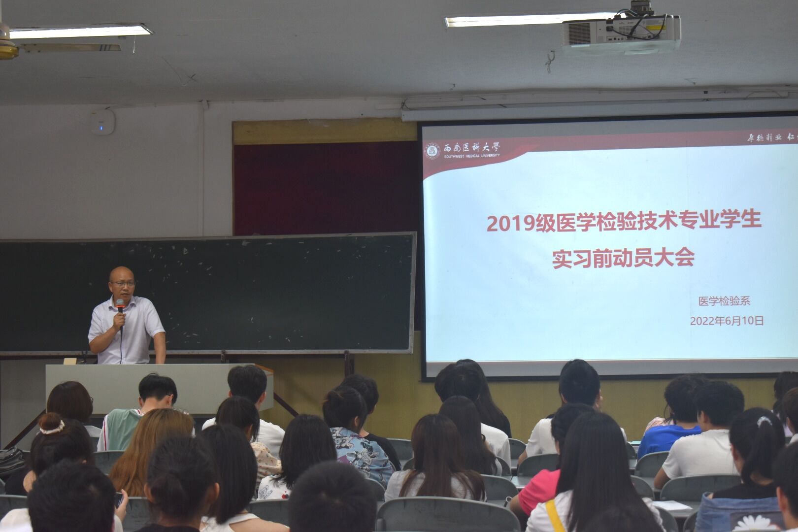 为进一步做好实习交换工作,引导同学们做好实习各项准备工作,6月10日下午,医学检验系在忠山校区临床演讲厅召开2019级实习动员大会。医学检验系党政领导、学生科、教研室老师及2019级全体学生参加本次会议。会议由系党总支书记吕春主持。