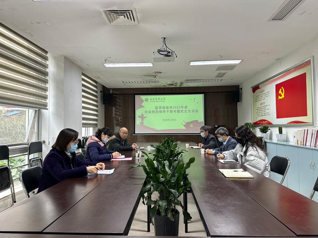2023年1月5日下午,医学检验系在附属医院医学检验部学习室召开2022年度处级党员领导干部民主生活会,附属医院党委副书记•纪委书记曾宪利、医学检验系处科级领导干部、党总支委员、教职工代表参加会议。会议由系党总支书记吕春主持。