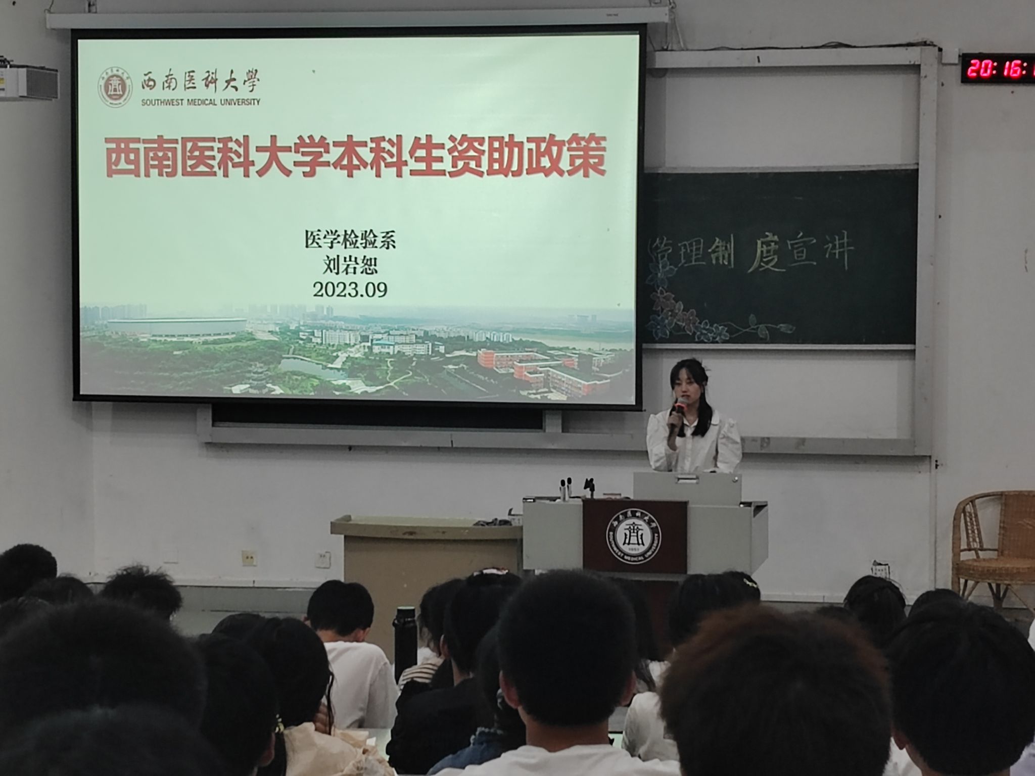 为了让大一新生更好地了解国家和学校的资助政策,让每一名学生都知晓和领会国家对大学生的关爱和帮助,9月14日晚,医学检验系在鸿文楼204召开2023级本科生资助政策宣讲会。会议由医学检验系刘岩恕主讲,2023级全体新生参加。