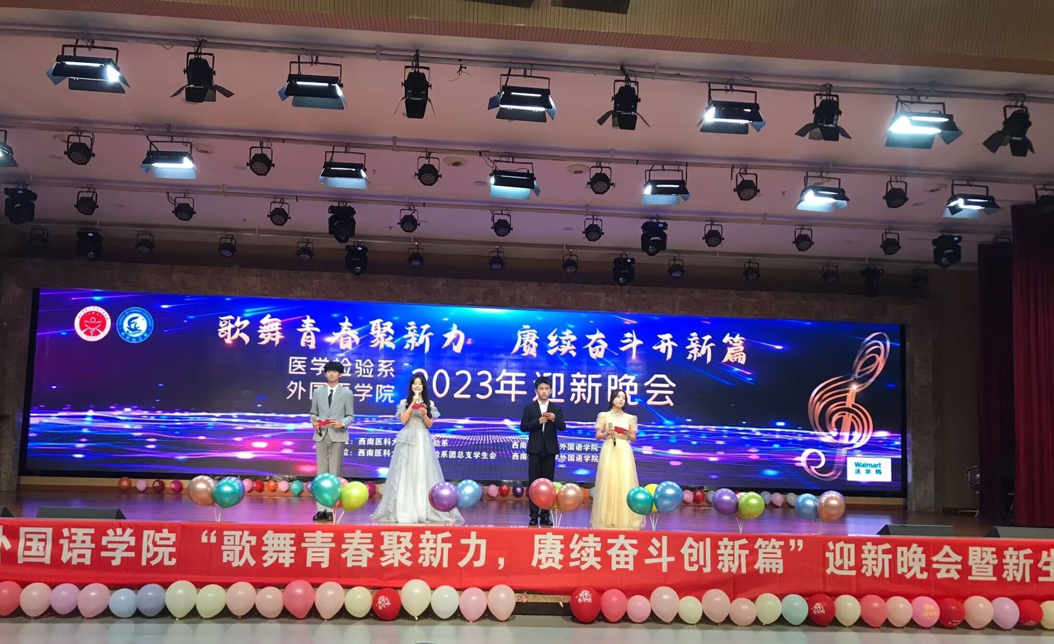 晚会伊始,教师工作部•人事处处长刘文胜致辞,对来自全国各地的医学检验系和外国语学院2023级新同学标识热烈欢迎。刘文胜指出,beat365官方网站是一所具有红色基因和优良传统的高校,历代西南医大人接续奋斗不断谱写时代新篇,2023级新同学要拿好接力棒,跑出加速度,奋力开启人生新篇章。刘文胜寄予全体新同学要做好大学规划和职业生涯规划,正确处理好与学校、老师、家长和同学之间的关系,踔厉奋发,努力实现自己的人生目标。