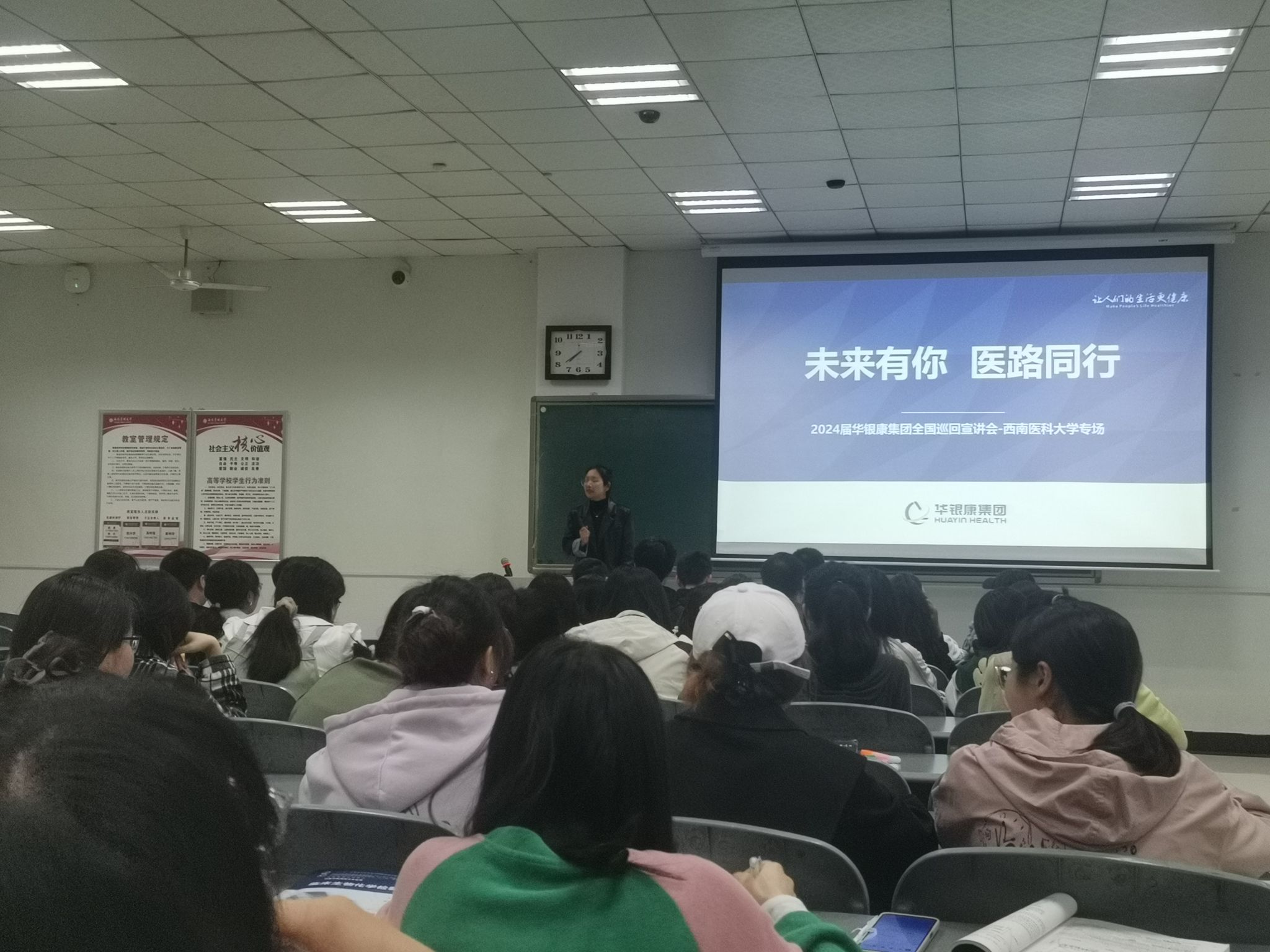据悉,成都华银医学检验所有限公司是华银康医疗集团旗下的企业,此次招聘岗位有营销管培生、市场管培生等20余个岗位。此次专场招聘会学生积极性高,反响热烈,宣讲会结束后,已有参会学生通过公司微信公众号进行简历投递。