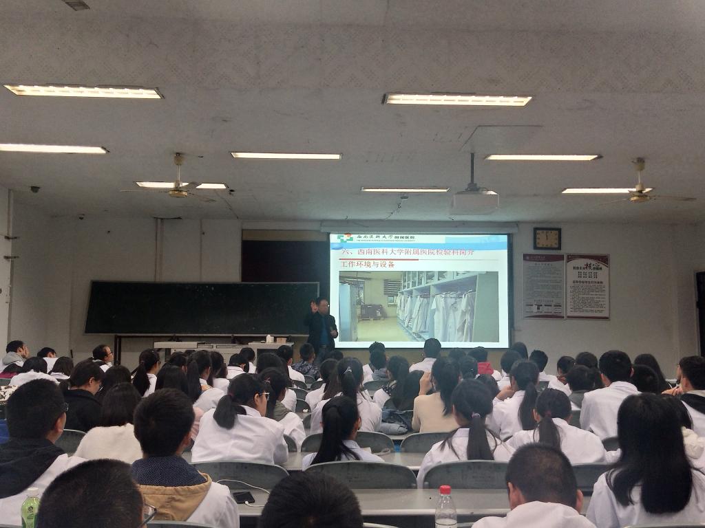 实地参观学习结束后,医学检验系主任陶华林在临床演讲厅为新生开展了专业思想教育专题讲座。陶华林分别从医学检验的概念、国内外医学检验的发展简况、中国检验医学高等教育模式、中国检验医学的管理机构、beat365官方网站医学检验系简介、beat365官方网站第一附属医院检验科简介、检验系四年制学生的培养方案、如何学好检验医学这几个方面进行了全面讲授,这对于新生是宝贵的学习机会,对培养适应我国医药卫生事业现代化全面发展的学生有着极其重要的深远意义。通过此次讲座我们意识到,要成为应用型检验人才,我们必须具备现代化医学检验能力、终身学习可持续发展能力、批判性思维能力和良好的职业素养。