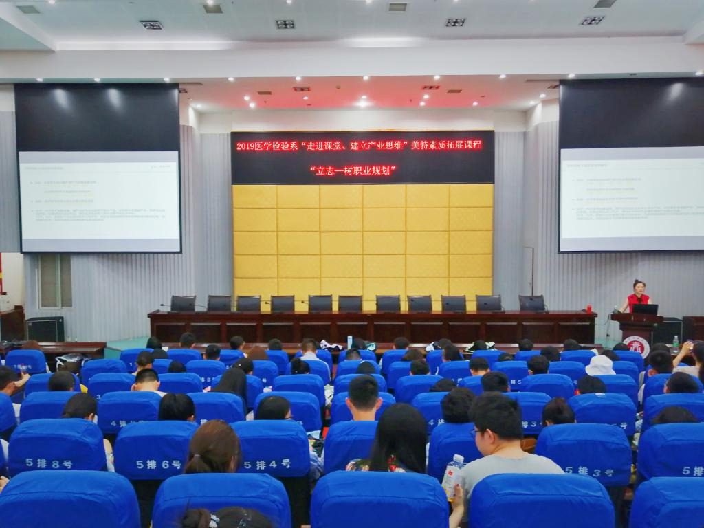 “走进课堂·建立产业思维”素质拓展课程是为加强医学检验系学子的创新创业思维而开设的课程。此次课程由孟柯杉主讲,首先以“IVD行业”综合分析让同学清晰了未来就业形势,进而提高“树立职业规划重要性”的认识。而后简洁明了的讲解了如何做一份完整的职业规划。最后通过对实际案例的分析,让同学们更加重视职业规划。