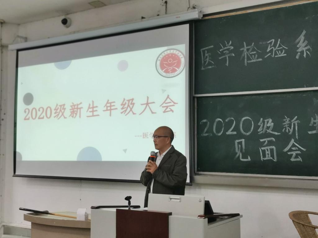 10月13日中午,医学检验系在鸿文楼203教室召开2020级新生见面会,系党总支书记吕春、学生科副科长何顺姣、刘泸老师出席,2019级主要学生干部、2020级助理班主任及2020级105名新同学参会。
