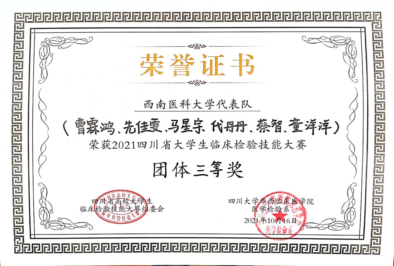 beat365官网学子在2021年四川省大学生临床检验技能大赛中喜获佳绩
