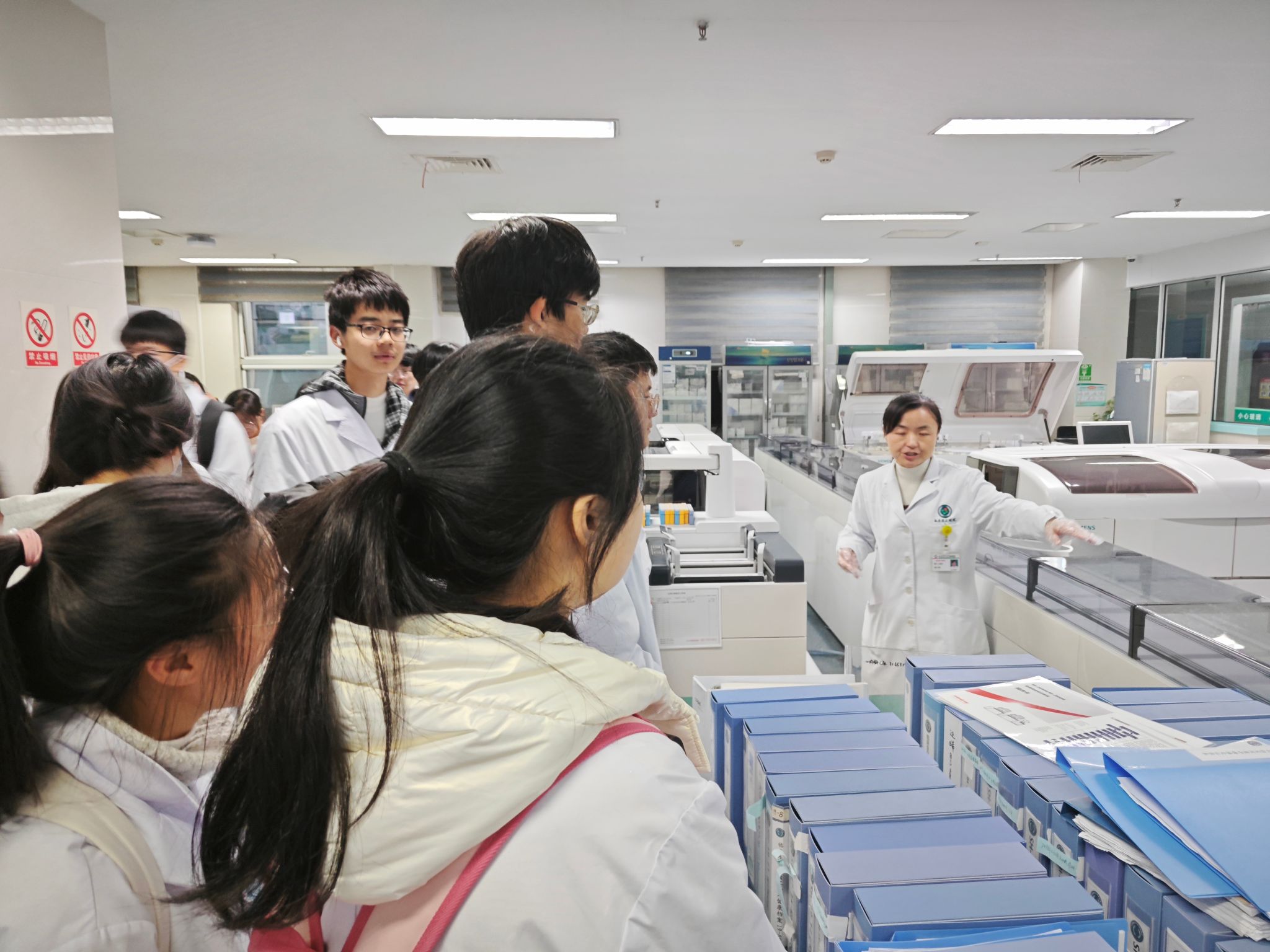 为进一步加强2023级新生专业思想教育,提高新生对医学检验行业的认识和了解,11月30日下午,医学检验系组织2023级新生赴附属医院医学检验部开展观摩学习活动。医学检验部各组指导老师、医学检验系2023级全体同学参加此次活动。