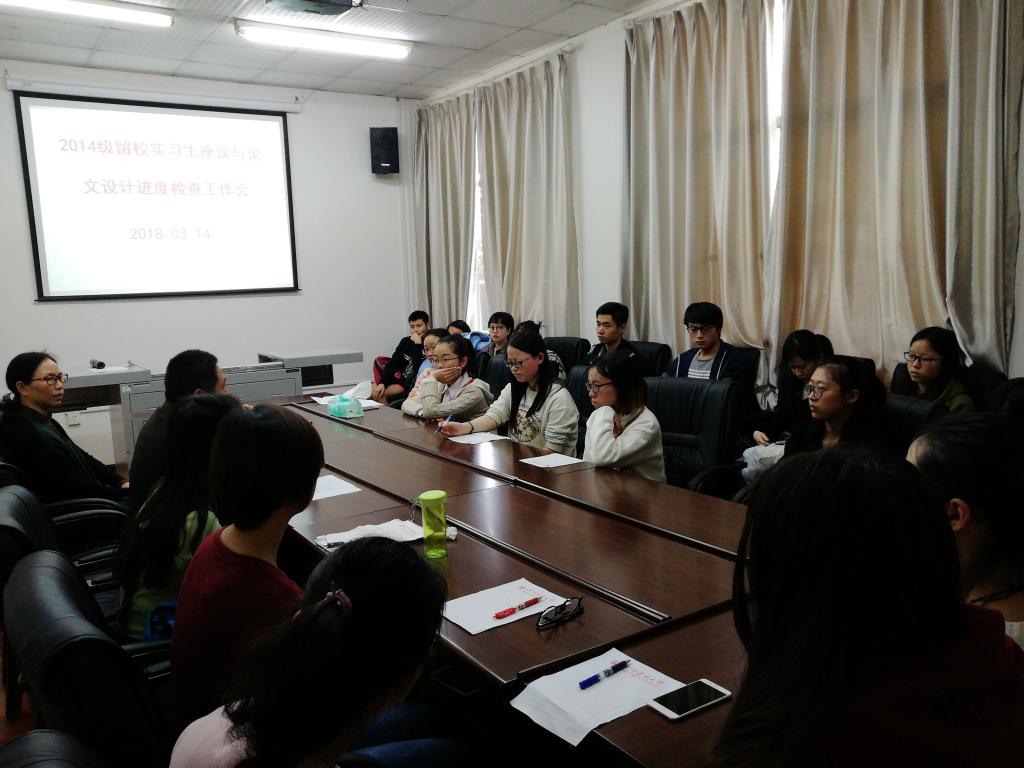 3月14日下午,医学检验系召集2014级在附属医院及附属中医院实习的全体同学在医学检验系会议室召开实习学生座谈会与论文设计进度检查工作会,系主任陶华林、党总支书记黄君、学生科科长陈勇参会,会议由陶华林主持。
