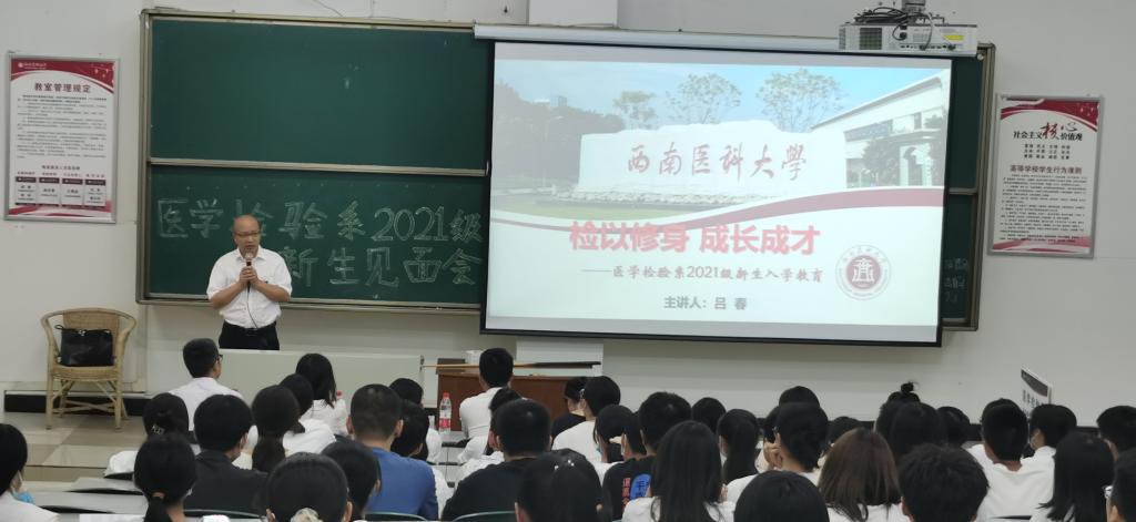 吕春对131名新同学的到来表示热烈欢迎,并以“检以修身,成长成才”为题为全体2021级新生上了“开学第一课”,介绍了学校及医学检验系基本情况,希望同学们找准定位,尽快适应大学生活;设定目标,做好大学职业规划;努力付出,收获成功的未来。最后,吕春寄语同学们要发扬beat365官方网站“厚德精业,仁爱济世”的校训,树立远大理想,锤炼品德修养,练就过硬本领,努力成为“勤学善思,知行合一”的高素质人才!