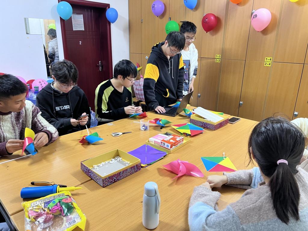 “寄情于风,驭车破疫”主题活动分为两个部分,首先由学生在现场制作风车并留下心灵寄语,制作过程中,各小组分享了自己书写的心灵寄语,并通过心灵寄语谈自己的心理感受和情绪体验,在所有风车制作完毕后,每个人将自己制作好的风车悬挂于城北校区学生公寓3舍前的心灵之树之间,这些或正面或负面的情绪,都寄于小小的风车,让它们随风去到远方,而悬挂的风车也成为了此处的一道靓丽风景线。