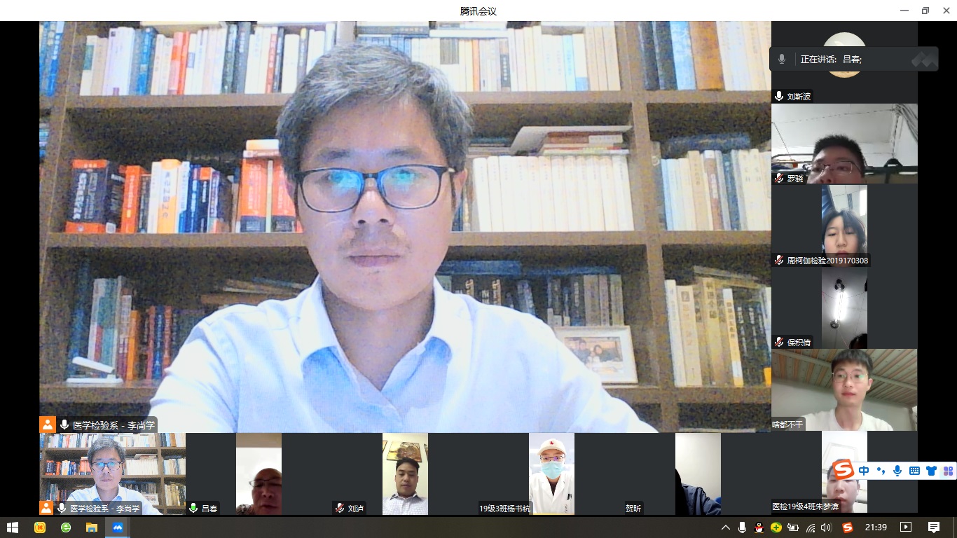 为进一步推进2023届毕业生就业工作,指导学生认清就业形势,促进学生树立“先就业再择业”的就业思想,5月6日晚,医学检验系通过腾讯会议线上召开2023届毕业生就业工作推进会,医学检验系党总支书记吕春,系主任刘靳波,学生科辅导员李尚学、刘泸,教学秘书周家红以及2023届全体毕业生参加会议。会议由吕春主持。