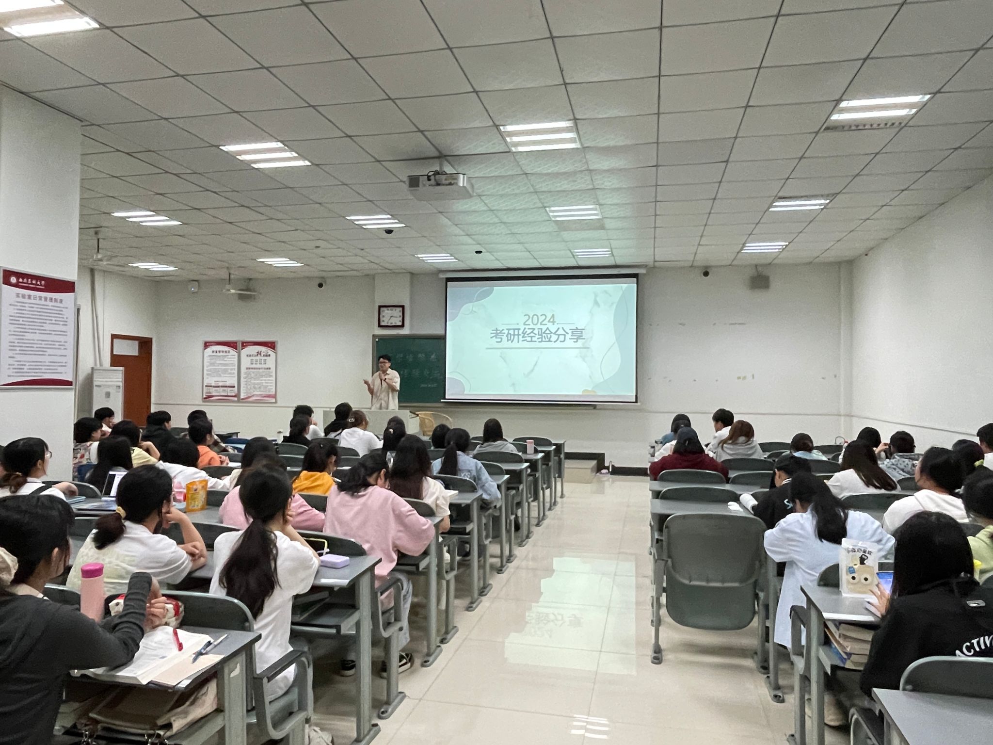 为进一步做好2025届毕业生考研指导工作,4月26日晚,医学检验系在粒香苑405举办2024届毕业生考研经验分享会。会议由医学检验系团总支学生会主席彭希诺主持,邀请2024届毕业生胡宇豪、刘宇瀚、钟航主讲,2021级全体同学参加。