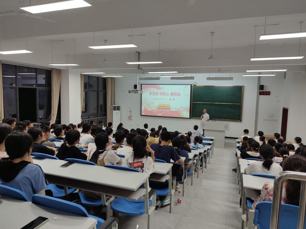 吕春以“学党史,守初心,勇担当”为题,从为什么要学习党史、全面理解中国共产党历史、简述新中国史改革开放史和社会主义建设史、把学“党史”作为一项重要政治任务落到实处及把学习教育与实际工作结合起来等五个方面进行了讲述。吕春强调认真学习和深刻理解中国共产党历史的重要意义,然后从不同角度帮助同学们了解中国共产党百年奋斗的伟大历程,希望党员同志和全体新生要站在历史的高度,深入开展党史学习教育,为实现“两个一百年”奋斗目标做出新的更大贡献。