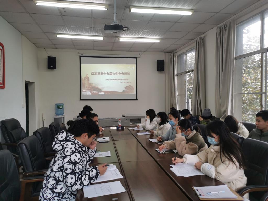 11月22日中午,附属医院第四十六党支部(医学检验系学生党支部)在忠山校区跃进楼三楼会议室组织召开十九届六中全会精神专题学习会,支部全体党员参加会议。会议由支部书记李尚学主持。