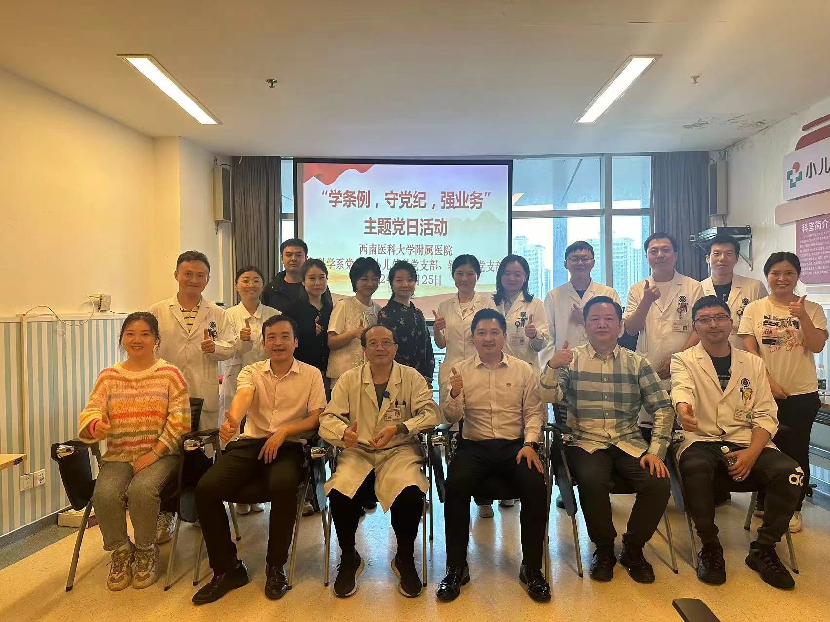 4月25日下午,附属医院输血科党支部和小儿外科党支部在康健中心院区小儿外科会议室联合开展“学条例,守党纪,强业务”主题党日活动。此次活动由小儿外科党支部熊耕书记主持,双方支部共计20余名党员参加。