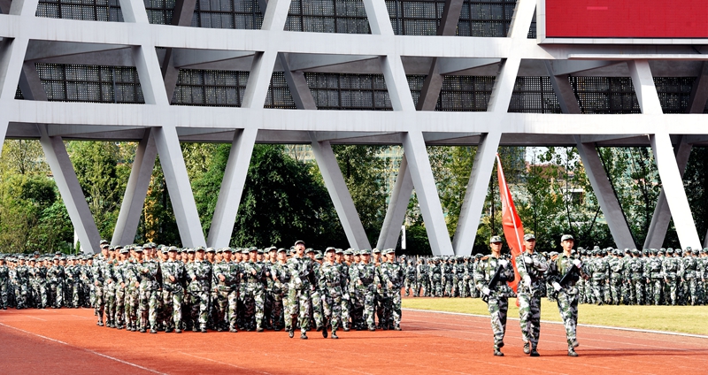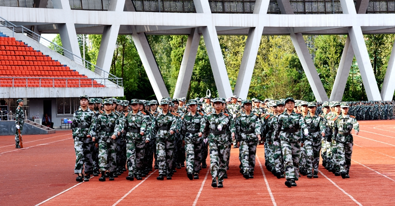 9月25日下午,2019级新生军训汇演在城北校区奥林匹克公园主体育场举行。校领导廖斌、李尚志、刘毅、刘广益,龙马潭区人民武装部、武警泸州支队相关领导以及学校各职能部门、二级院系负责人等出席了汇演。军训汇演由党委副书记、纪委书记李尚志主持。