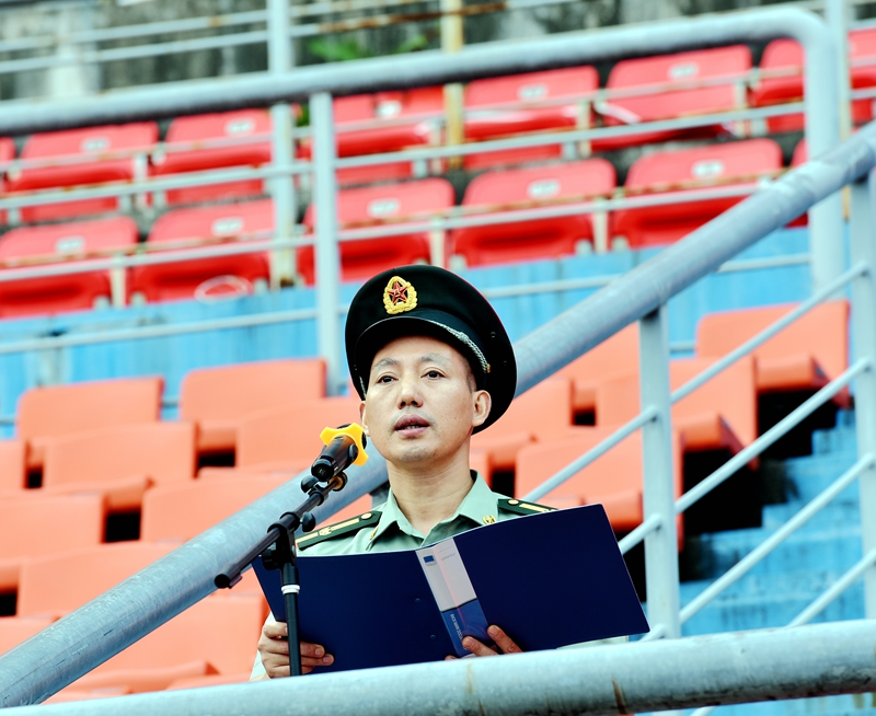武装部部长张立新宣读2019级新生军训工作先进集体、先进个人的表彰决定。