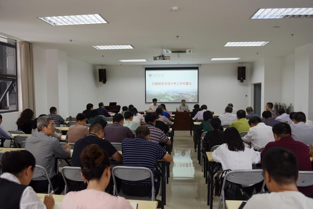 为贯彻落实党中央、国务院《关于开展扫黑除恶专项斗争的通知》精神和省教育厅、泸州市相关文件精神,9月20日,beat365官网在德诚楼档案馆会议室召开了beat365官方网站扫黑除恶专项斗争工作布置会。全体在家校领导、各党政后及教辅部门负责人、各二级院系党组织负责人、扫黑除恶专项斗争工作领导小组办公室成员参加了会议。会议由党委书记廖斌主持。