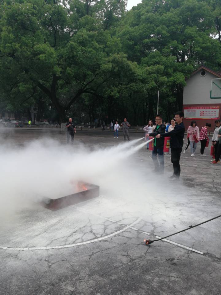 本次培训演练分为三个环节,首先在忠山校区学术报告厅进行消防安全的理论培训,紧接着在含光楼各楼层组织师生进行模拟火灾应急疏散演练,最后在篮球场分别进行灭火实际操作演练。