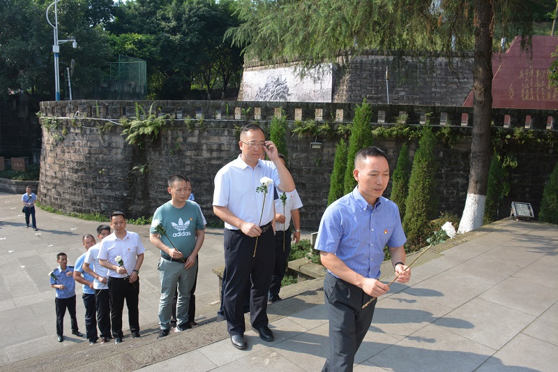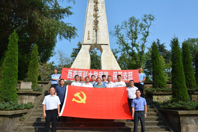 6月22日下午,武装保卫支部全体党员来到龙透关爱国主义教育基地,接受党史教育。1926年,在杨闇公、朱德、刘伯承组织和领导下,以打倒军阀,配合北伐为旗帜,在泸州发动了一场大规模的武装起义,这次起义被称为“南昌起义的预演”。党员同志们全面了解了泸州起义的过程和伟大意义,向泸州起义纪念碑敬献小白花,缅怀老一辈无产阶级革命家的丰功伟绩。