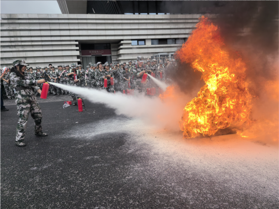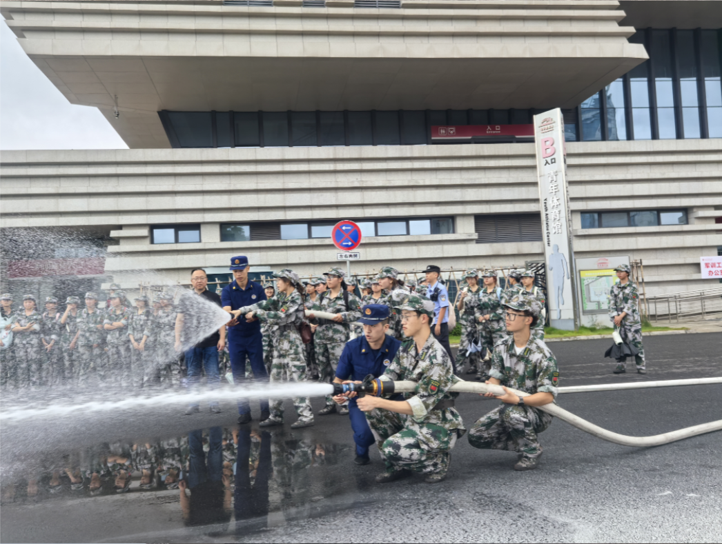 疏散逃生演练结束后,保卫处会同泸州消防救援支队组织部分新生开展消防器械展示、灭火演练。通过消防器械展示、灭火实操,新生了解了消防器械的种类功能,掌握了常用灭火器及水枪水带的使用方法,提升了扑救初起火灾的意识和能力。